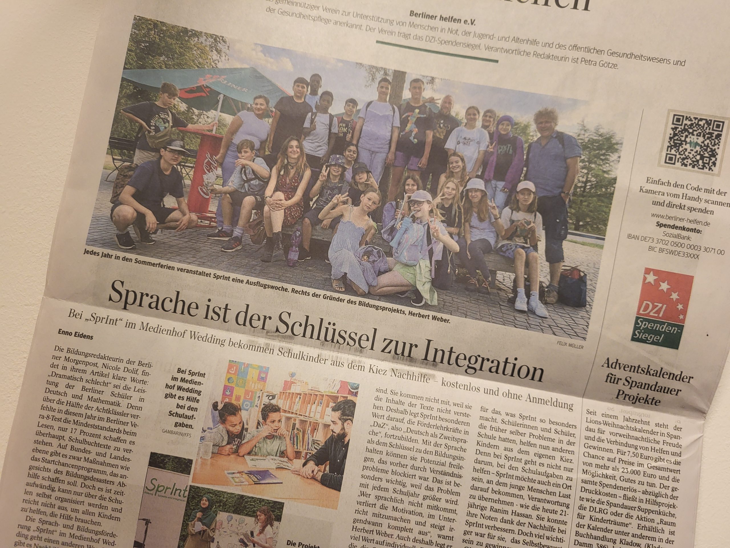 Eine ganze Seite SprInt gab es am Wochenende in der Berliner Morgenpost! Die wohltätige Initiative Berliner helfen e.V. stellt dort jede Woche gemeinnützige Projekte vor.