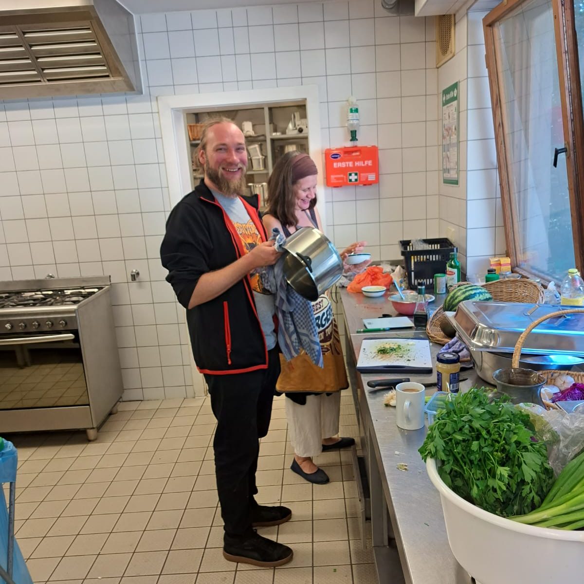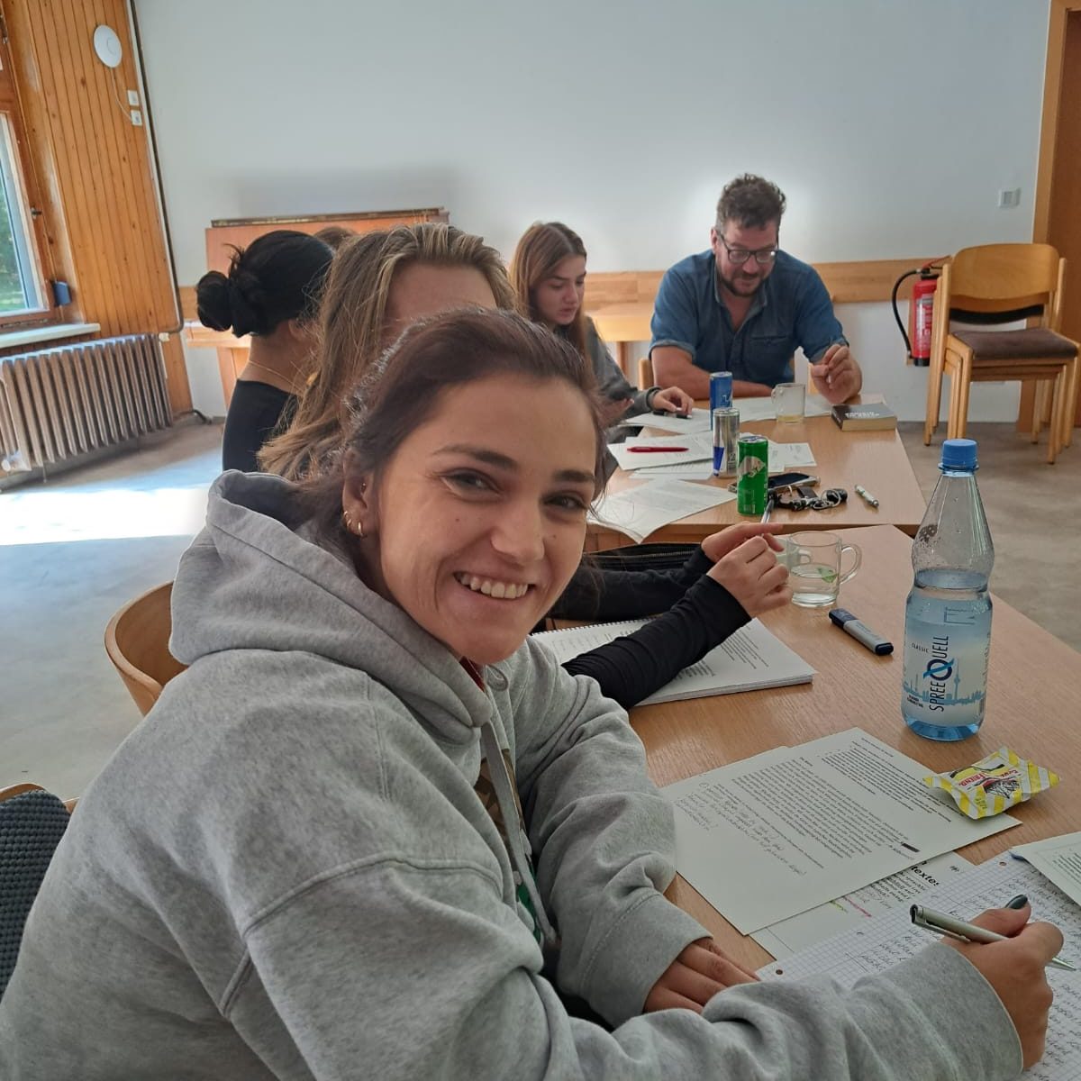 Neben der intensiven Arbeit an der Deutsch-als-Zweitsprache-Expertise was das Fortbildungswochenende auch als Teambuilding-Möglichkeit gedacht. Die Studentinnen und Studenten spielten am Abend und in den Pausen Kicker, Tischtennis und Volleyball miteinander, sangen nachts Lieder am Lagerfeuer oder gingen nach dem Seminar zum Baden in einen nahen See. Dazu gab es noch hervorragendes Essen, das Susanne, Felix und Alina zubereiteten. Beim Essen gab es viele Gespräche, denn einige der Studentinnen und Studenten arbeiteten in unterschiedlichen Schulen oder Projekten. Es gab viel zu erzählen und auszutauschen, viele lernten die Arbeit von SprInt besser kennen. Unser Gefühl war, dass das Seminar zwischenmenschlich und fachlich den Teilnehmern viel gebracht hat und dazu auch noch Spaß machte.