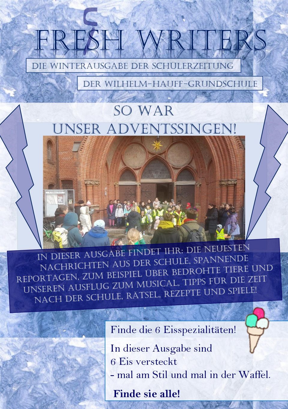 Kleiner Rückblick: Wir haben Anfang Dezember am Weihnachtssingen teilgenommen. Und die fleißigen Redakteure der Wilhelm-Hauff-Schülerzeitung haben darüber berichtet.