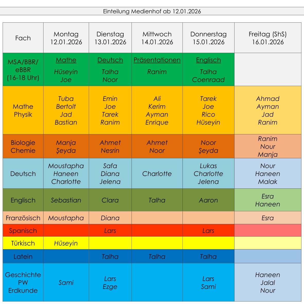 Aktueller Wochenplan für Nachhilfe und Förderunterricht im Medienhof Wedding